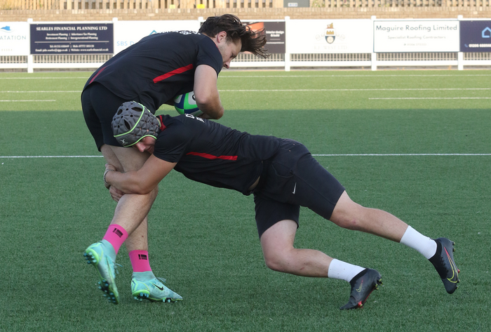 Colchester RUFC players practice contact training