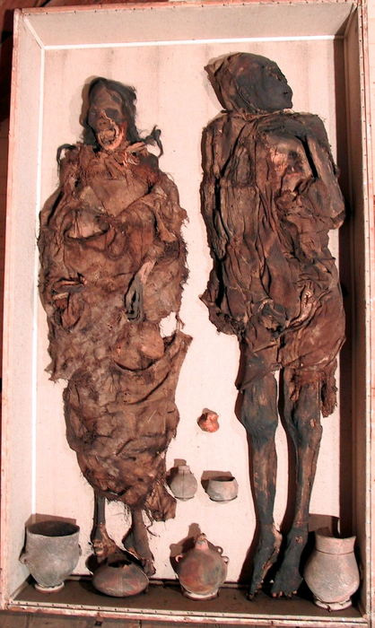 Only the female mummy had died of natural causes. She also showed extensive damage to the skeleton, but this occurred after death, probably during burial and not on purpose.