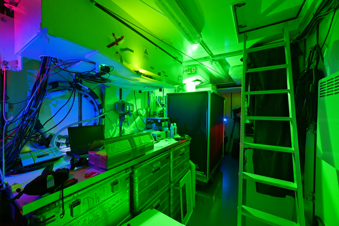 Interior of the OCEANET container with the green laser of the TROPOS lidar during the MOSAiC expedition in the Arctic 2019/2020.