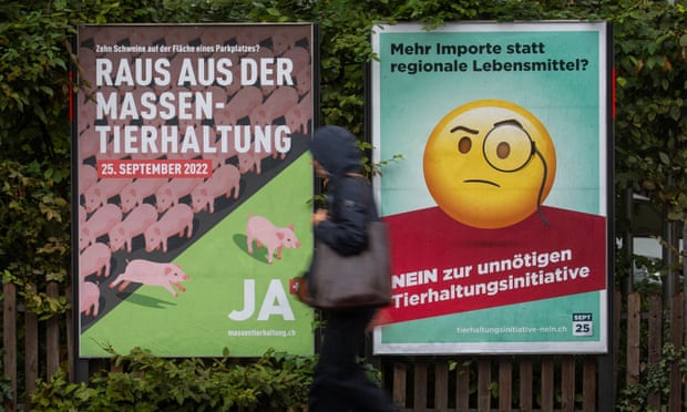 The latest polling shows 52% of voters oppose a ban, and 47% support one. If the factory-farming ballot initiative is passed, Switzerland’s constitution, which already protects the “welfare and dignity of animals”, would be modified to include an animal’s right “not to be intensively farmed”, and new laws would lower animal stocking rates to meet organic standards.