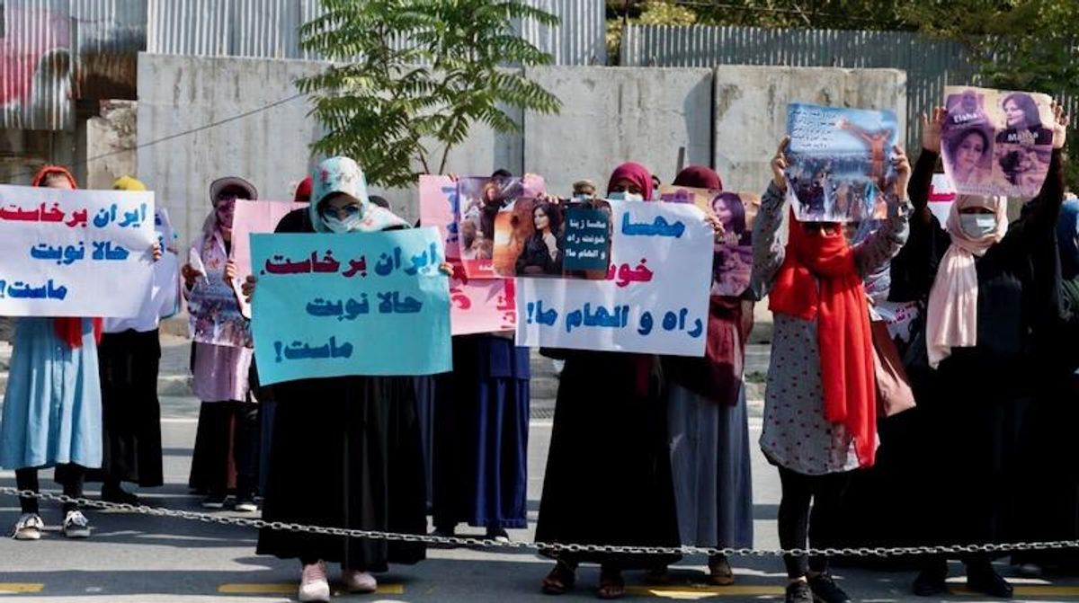 Chanting the same "Women, life, freedom" mantra used in Iran, about 25 women protested in front of Kabul's Iranian embassy before Taliban forces fired into the air, an AFP correspondent reported.