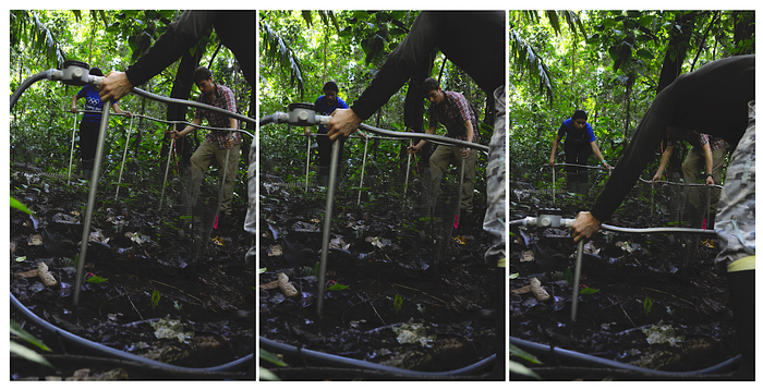 IMAGE: THE UNDERGROUND HEATING SYSTEM BEING INSTALLED IN THE FOREST PLOTS ON BARRO COLORADO ISLAND, PANAMA. view more