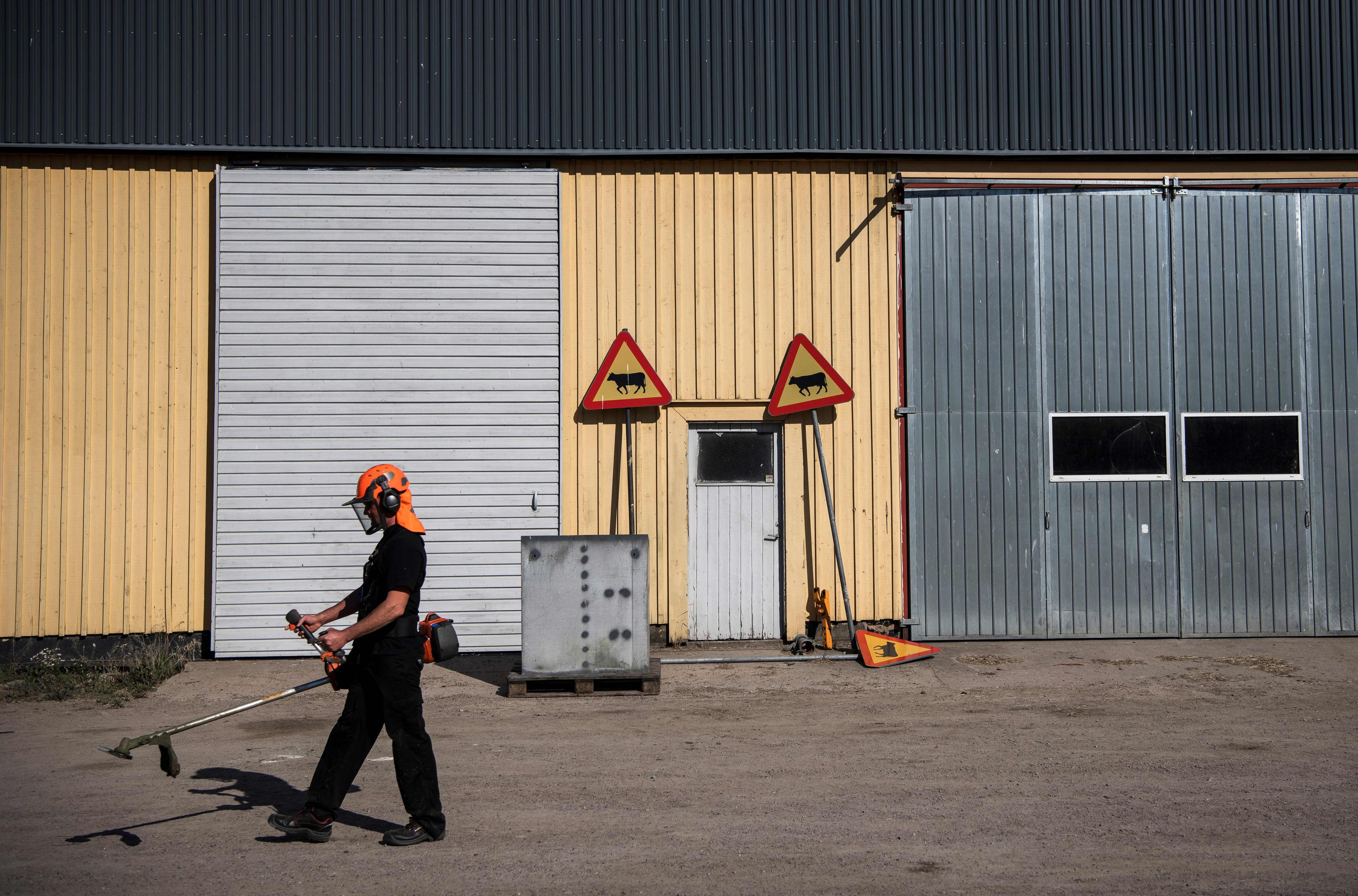 At an open prison in Mariestad, Sweden, inmates work at the attached farm.