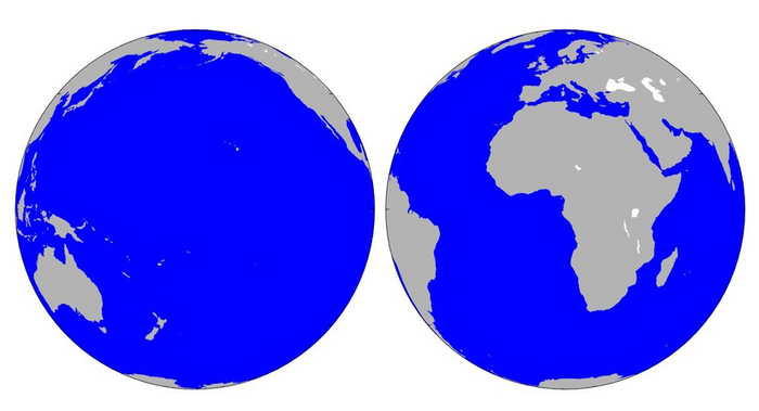 Earth’s ‘marine’ and ‘continental’ hemispheres