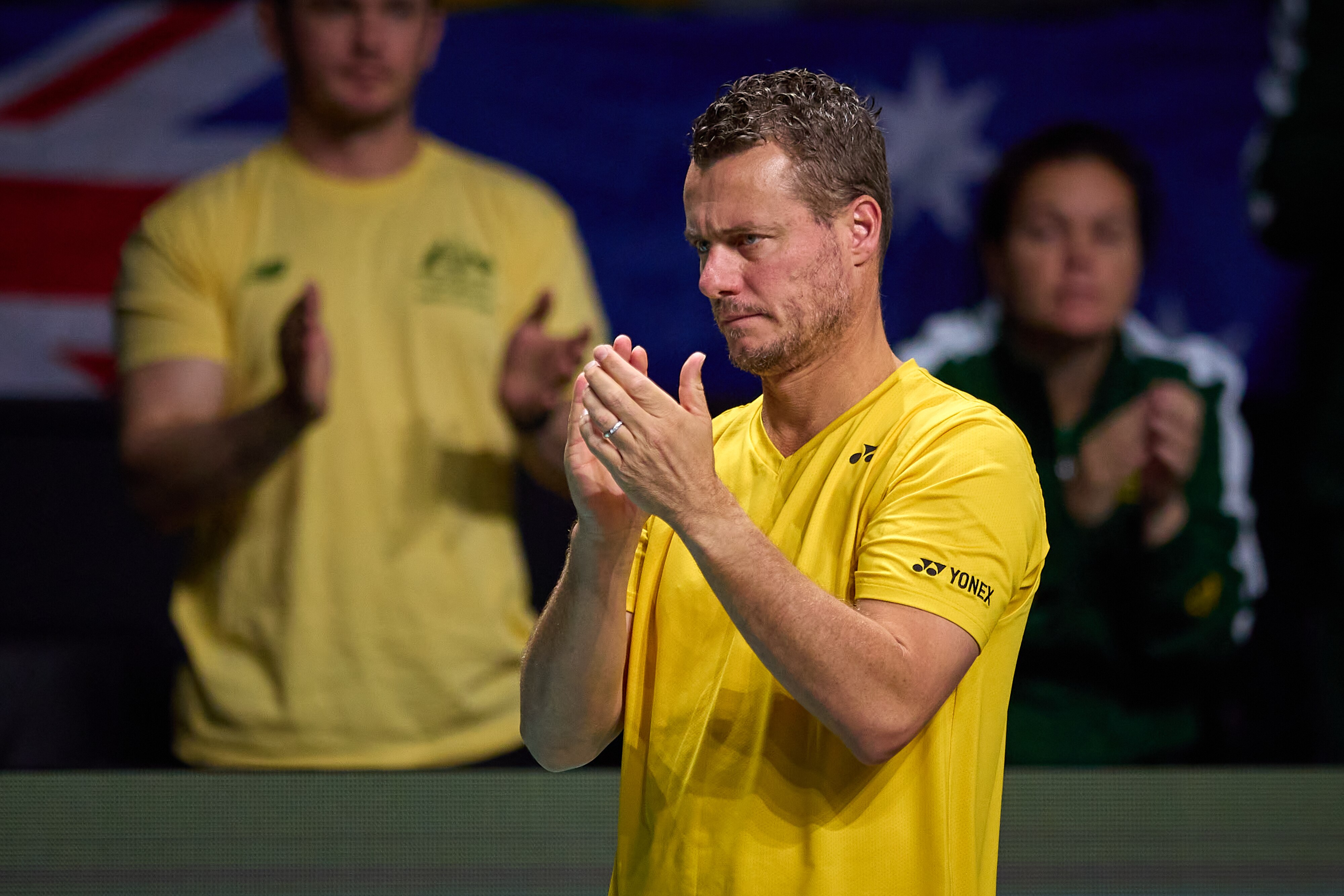 Australia captain Lleyton Hewitt encouraged Kokkinakis throughout. (Getty Images: Fran Santiago)