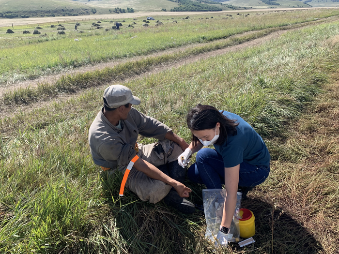 Peer-Reviewed PublicationIMAGE: A PHLEBOTOMIST COLLECTS BLOOD IN THE HAY FIELD IN THE SELENGE AIMAG (PROVINCE) IN MONGOLIA FOR THE THIRD ROUND OF THE SARS-COV-2 POPULATION-BASED SEROEPIDEMIOLOGIC INVESTIGATION IN MAY 2021. view more