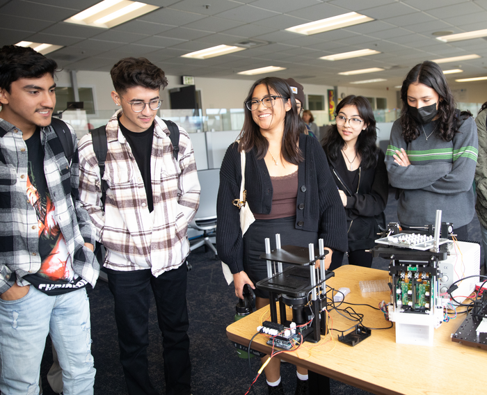 IMAGE: ALISAL HIGH SCHOOL STUDENTS ON A VISIT TO THE LIVE CELL BIOTECHNOLOGY DISCOVERY LAB AT UCSC. (PHOTO BY CAROLYN LAGATTUTA) view more