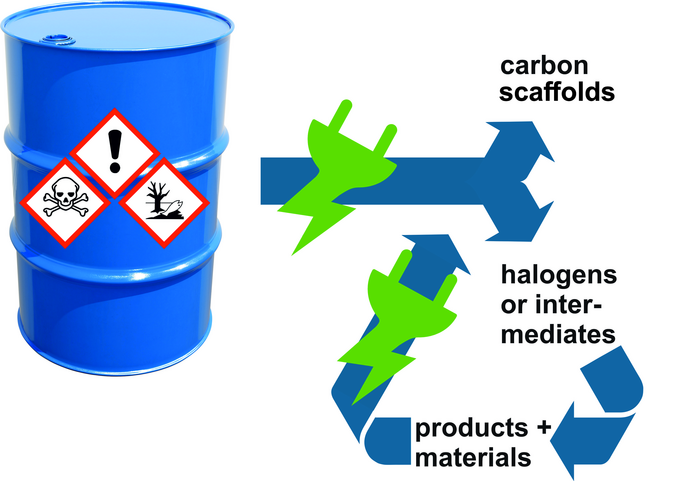 IMAGE: THE HALOCYCLES RESEARCH PROJECT AIMS TO USE GREEN ELECTRICITY TO RECLAIM HALOGENS WHILE LEAVING THE CARBON STRUCTURES OF THE RELATED WASTE COMPOUNDS INTACT.view more