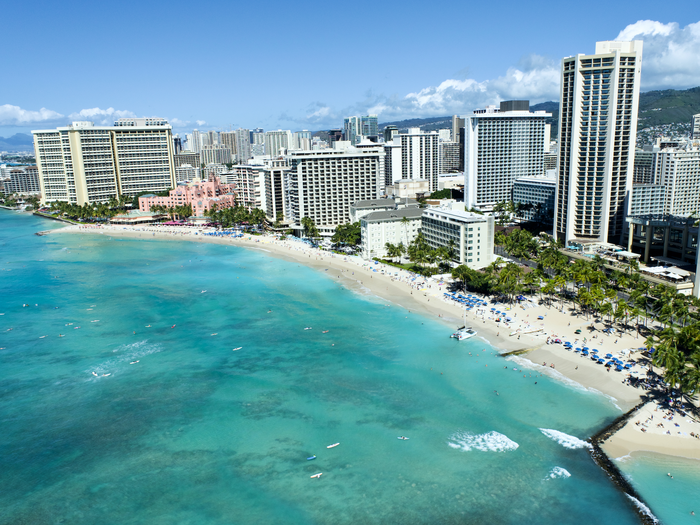 IMAGE: AERIAL IMAGE OF ROYAL HAWAIIAN BEACH. view more