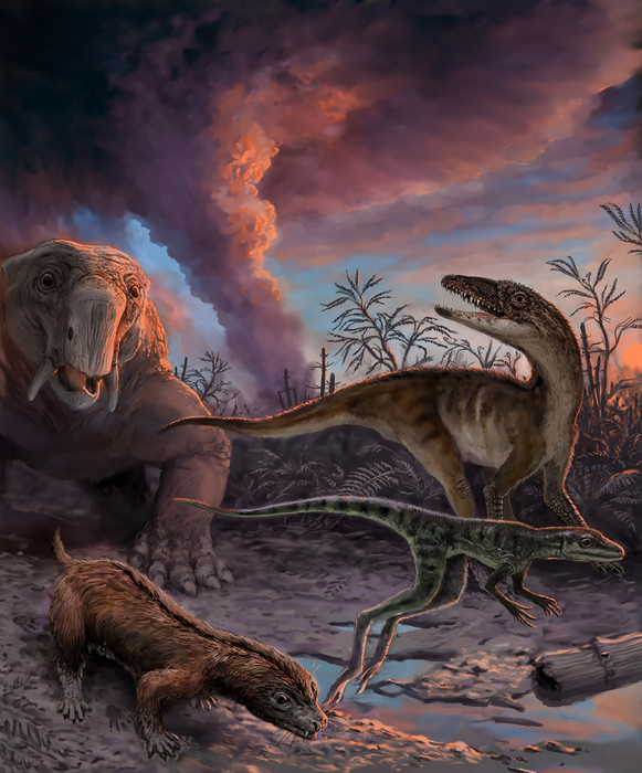 According to new research, changes in global climate associated with the Triassic-Jurassic mass extinction – which wiped out many large terrestrial vertebrates such as the giant armadillo-like aetosaurs – actually benefitted the earliest dinosaurs.