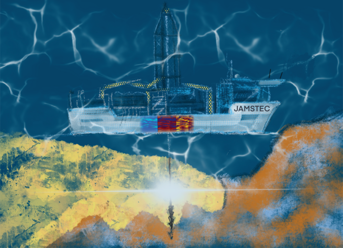 IMAGE: JAPAN TRENCH FAST DRILLING PROJECT (JFAST) DRILLING THROUGH THE PLATE BOUNDARY FAULT THAT RUPTURED; THE RESEARCH TEAM COLLECTED CORE SAMPLES TO ANALYZE POST-EARTHQUAKE STRESS. view more