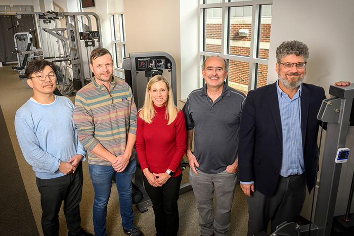 Grant and Award AnnouncementIMAGE: FROM LEFT, CHEMICAL AND BIOMOLECULAR ENGINEERING PROFESSOR HYUN JOON KONG, KINESIOLOGY AND COMMUNITY HEALTH PROFESSORS NICHOLAS BURD AND MARNI BOPPART, PSYCHOLOGY PROFESSOR JUSTIN RHODES, AND CHEMISTRY PROFESSOR JONATHAN SWEEDLER ARE GATHERED AT THE FREER HALL PHYSICAL TESTING SITE AT THE UNIVERSITY OF ILLINOIS URBANA-CHAMPAIGN. PHOTO CREDIT: FRED ZWICKY. view more