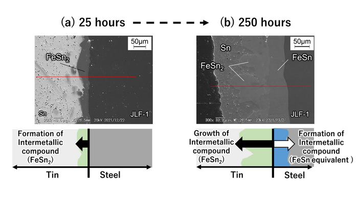 The discoveries discussed in this article clarified the cause and mechanism of corrosion of liquid metal tin, which has relatively strong corrosiveness. This research will contribute significantly to the achievement of a carbon-neutral society by assisting in the development of highly reliable advanced heat-receiving equipment for fusion reactors.