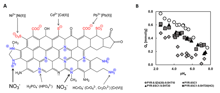 Peer-Reviewed PublicationIMAGE: RESEARCHERS AT CHIBA UNIVERSITY, JAPAN, PREPARED POLYACRYLONITRILE (PAN)-BASED ACTIVATED CARBON FIBERS THAT ARE CAPABLE OF REMOVING NITRATE IONS FROM THE ENVIRONMENT. A. ADSORBENT STRUCTURE AND ITS SURFACE FUNCTIONAL GROUPS. QUATERNARY NITROGEN (N-Q), INCLUDING GRAPHITIC NITROGEN, AND ALIPHATIC AMINE COULD BE EFFECTIVE FOR THE REMOVAL OF ANIONIC POLLUTANTS, SUCH AS NITRATE, PHOSPHATE, CHROMIUM, AND ARSENIC ANIONS. B. A GRAPH REPRESENTING THE INFLUENCE OF EQUILIBRIUM SOLUTION PH (PHE) ON THE AMOUNT OF NO3- ADSORPTION. view more