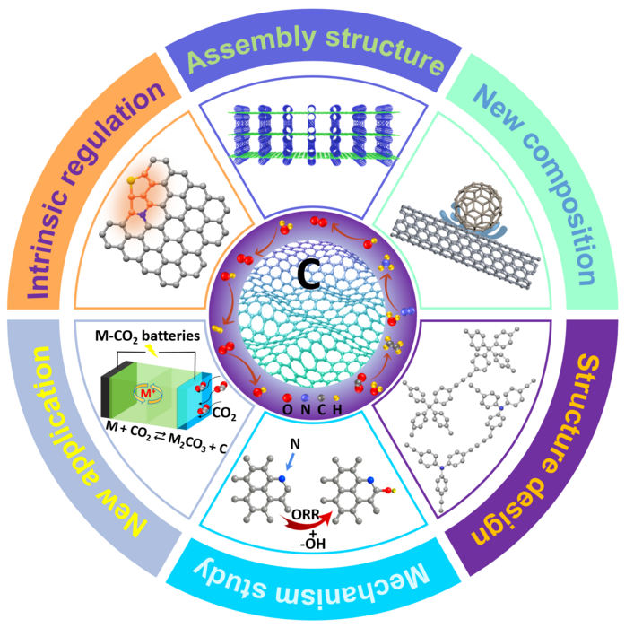 IMAGE: ADVANCES IN RESEARCH AND DEVELOPMENT OF CARBON-BASED METAL-FREE ELECTROCATALYSTS (C-MFECS) HAVE PROVIDED POTENTIAL ALTERNATIVES TO PRECIOUS METAL CATALYSTS FOR VARIOUS REACTIONS IMPORTANT TO RENEWABLE ENERGY AND ENVIRONMENTAL REMEDIATION. view more
