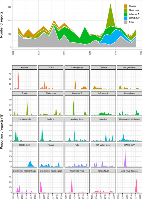 23 years of WHO Disease Outbreak News reports reveal how global threats posed by disease outbreaks have shifted over time