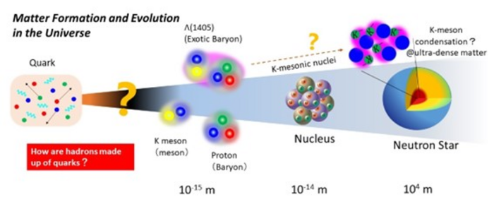 Osaka, Japan – The Standard Model of particle physics tells us that most particles we observe are made up of combinations of just six types of fundamental entities called quarks. However, there are still many mysteries, one of which is an exotic, but very short-lived, Lambda resonance known as Λ(1405). For a long time, it was thought to be a particular excited state of three quarks—up, down, and strange—and understanding its internal structure may help us learn more about the extremely dense matter that exists in neutron stars.