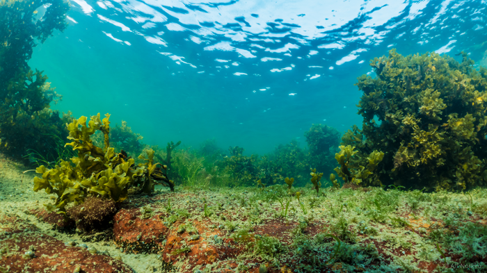 Methane forming microorganisms were found both in small pockets of sediment and on fliamentous algae overgrowing the bladderwrack. Picture from the publication by Roth et al.