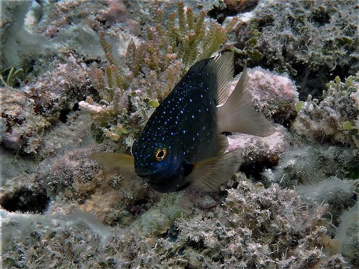 Jewel Damselfish (Plectroglyphidodon lacrymatus). The Jewel damselfish is a site-specific, farming damselfish