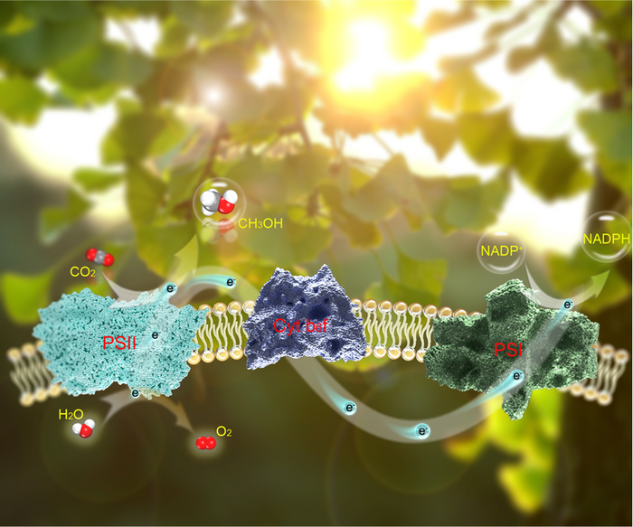 IMAGE: PHOTOSYNTHESIS IS THE GREATEST NATURAL PROCESS ON EARTH. IT HAS BEEN WIDELY ACCEPTED THAT CO2 ASSIMILATION TAKES PLACE IN LIGHT-INDEPENDENT REACTIONS, FOR EXAMPLE, THROUGH THE CALVIN-BENSON CYCLE IN THE STROMA. HERE, AN UNUSUAL LIGHT-DRIVEN CO2 ASSIMILATION (INTO METHANOL) BY THE PSII CORE COMPLEX IN PHOTOSYNTHESIS WAS REPORTED. THE EXTRAORDINARY FINDING IS LIKELY TO BE A SIMULTANEOUS EVENT ALONG WITH THE USUAL ELECTRON TRANSFER OCCURRING IN NORMAL LIGHT-INDEPENDENT ASSIMILATION. view more
