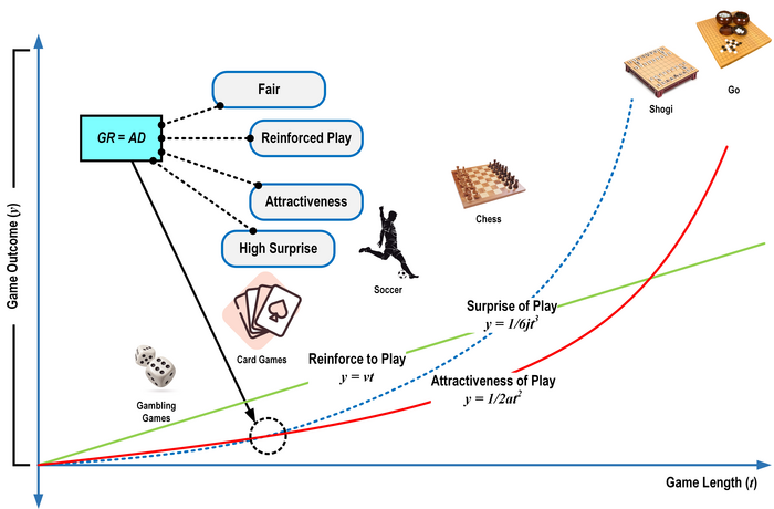 Peer-Reviewed PublicationIMAGE: RESEARCHERS FROM JAIST HIGHLIGHT THE IMPORTANCE OF CROSS POINTS BETWEEN GR (Y = 1/2AT2) AND AD (Y = 1/6JT3) CURVES, WHERE THE ELEMENTARY COMPONENTS OF PLAY WERE IDENTIFIED AND ESTABLISHED THE PRINCIPLE OF PLAY, BASED ON DATA OF CARD GAMES AND PREVIOUSLY CONDUCTED STUDIES ON SIMILAR TOPICS. view more