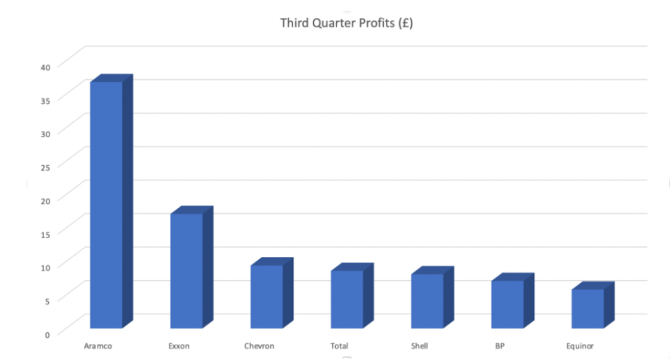 The third quarter profits of the world’s biggest oil and gas companies (Source: Reuters)