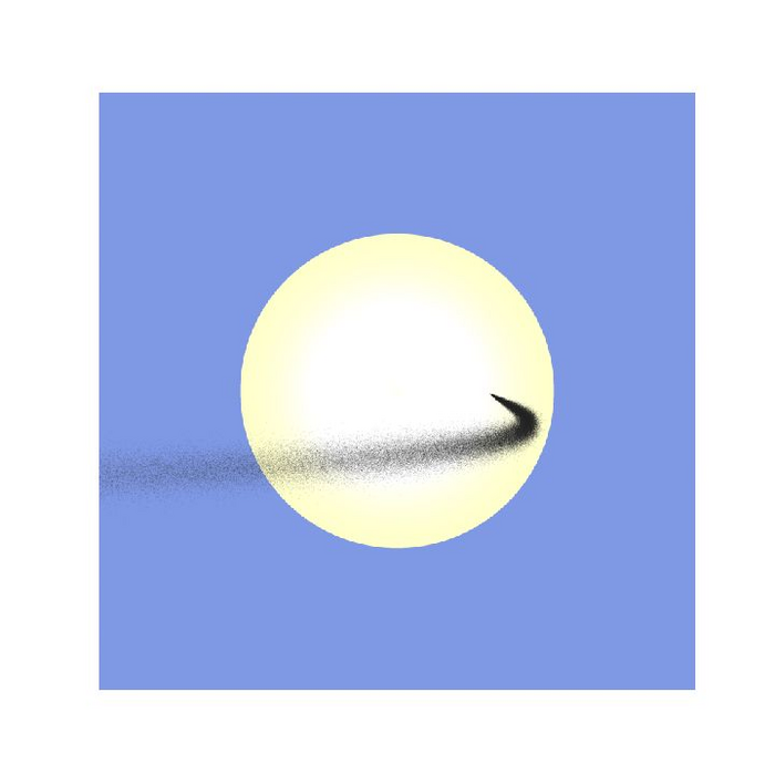 IMAGE: SIMULATED STREAM OF DUST LAUNCHED BETWEEN EARTH AND THE SUN. THIS DUST CLOUD IS SHOWN AS IT CROSSES THE DISK OF THE SUN, VIEWED FROM EARTH. STREAMS LIKE THIS ONE, INCLUDING THOSE LAUNCHED FROM THE MOON’S SURFACE, CAN ACT AS A TEMPORARY SUN SHADE. view more