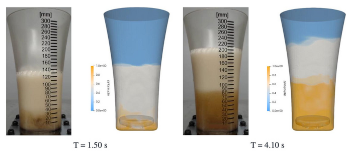 “Simulation of a bottom-up pouring process using a multiphase solver is a complex task that involves modeling the physical and chemical interactions that occur during the process, such as fluid dynamics, heat and mass transfer, and chemical reactions,” said author Wenjing Lyu. “By using a multiphase solver, it is possible to accurately predict the behavior of the system and optimize the design of the nozzle outlets and the cup geometry to ensure the fastest possible bottom-up pouring under various conditions such as pressure, temperature, and carbonation.”