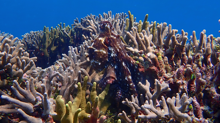 Peer-Reviewed PublicationIMAGE: THE DAY OCTOPUS, OCTOPUS CYANEA, CAMOUFLAGES ITSELF AGAINST THE CORAL REEF. view more