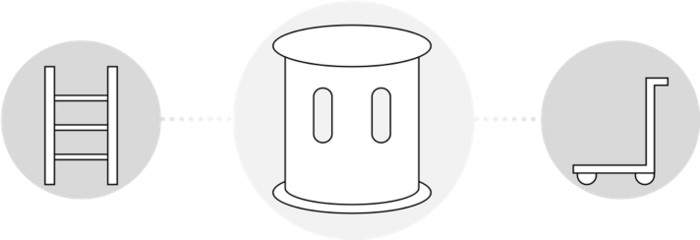 The system environment is detailed as follows: the user's smartphone, door, robotic bookshelf, and robotic chair are all connected; hence, the user can search for and select a book of interest on their smartphone, and the selected book will automatically be brought out from the bookshelf. The chair functions as a ladder by moving near to the user and letting the user step on it or a cart by transporting several books. In other words, in addition to executing its original function, each system component also adapts its function depending on the environment to offer user-friendly assistance.