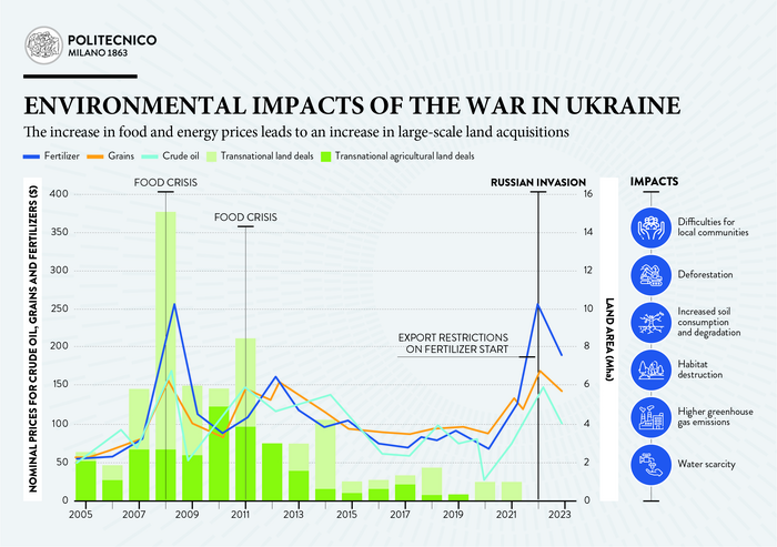 Science publishes an analysis by the Politecnico di Milano of the new "land rush" caused by the war and its large environmental impacts on local communities and food supply