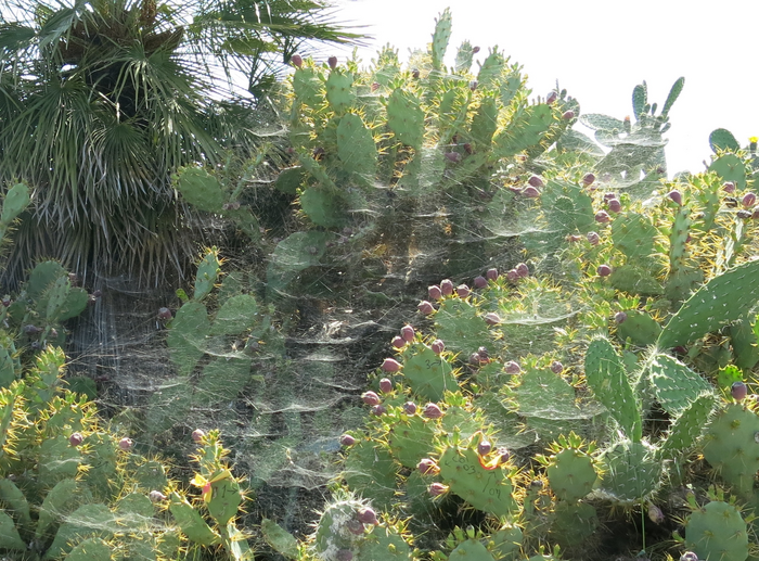 “Spiders that can form groups of hundreds, or even thousands, of interconnected webs can provide large surface areas of capture webs capable of intercepting high frequencies of airborne insects. Spider colonies also provide a substrate for other spider species, further increasing the number of predators and therefore, potentially increasing pest insect capture capability within colonies.”