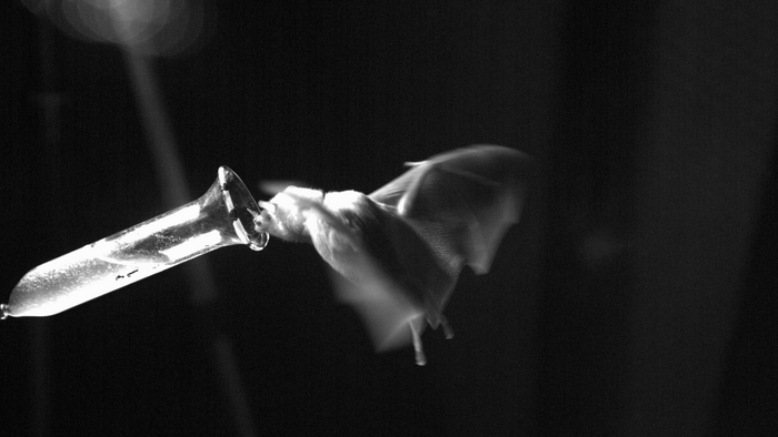 The researchers worked at the Smithsonian Tropical Research Institute recording Pallas’s long-tongued bats—a South and Central American bat that has the fastest metabolism of any mammal—as they drank from hand-blown glass flowers designed for the study to replicate the plants the animals feed from. High-speed infrared cameras captured photos and video of the bats as they descended upon the glass flowers and navigated their muzzles and tongues into the “bloom” to eat the nectar. Feedings typically lasted between a half- to one second.