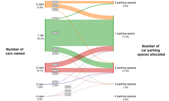 Peer-Reviewed PublicationIMAGE: A SANKEY CHART SHOWING THE CORRELATION BETWEEN NUMBER OF CARS OWNED AND NUMBER OF CAR PARKING SPACES ALLOCATED. view more