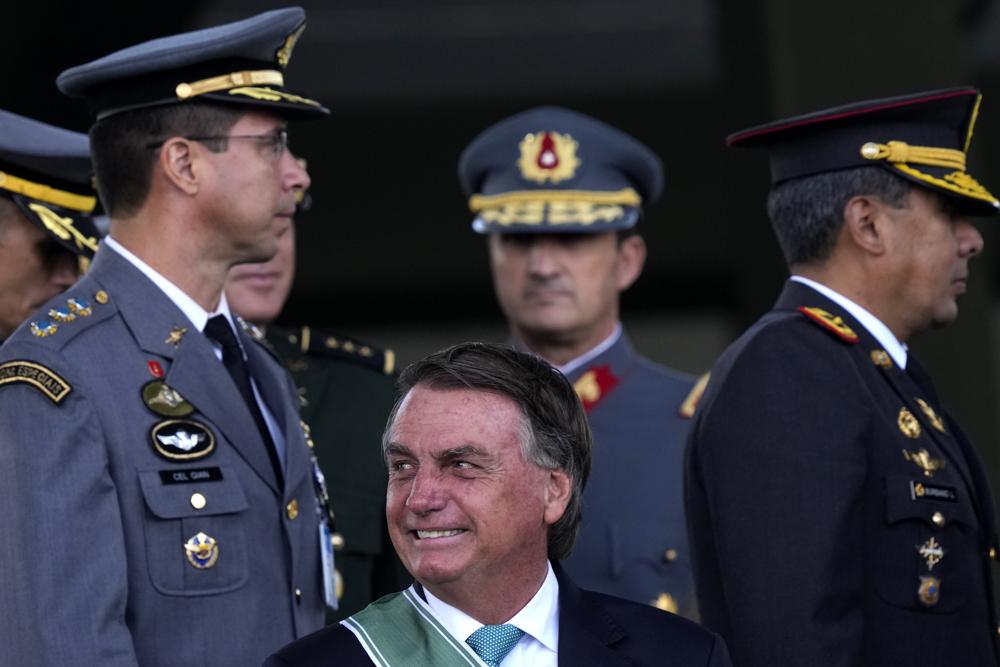 Brazil's President Jair Bolsonaro attends a ceremony marking Army Day at Army headquarters in Brasilia, Brazil, April 19, 2022. (AP Photo/Eraldo Peres, File)