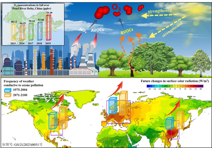 IMAGE: HIGH DOWNWARD SURFACE SOLAR RADIATION CONDUCIVE TO OZONE POLLUTION MORE FREQUENT UNDER GLOBAL WARMING view more