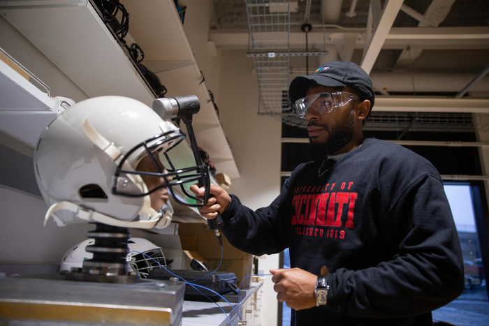 University of Cincinnati engineers put popular football helmets made by leading brands through impact testing and found that no single design demonstrated superior reduction of potential concussion incidence or consistent energy absorption at every part of the helmet.