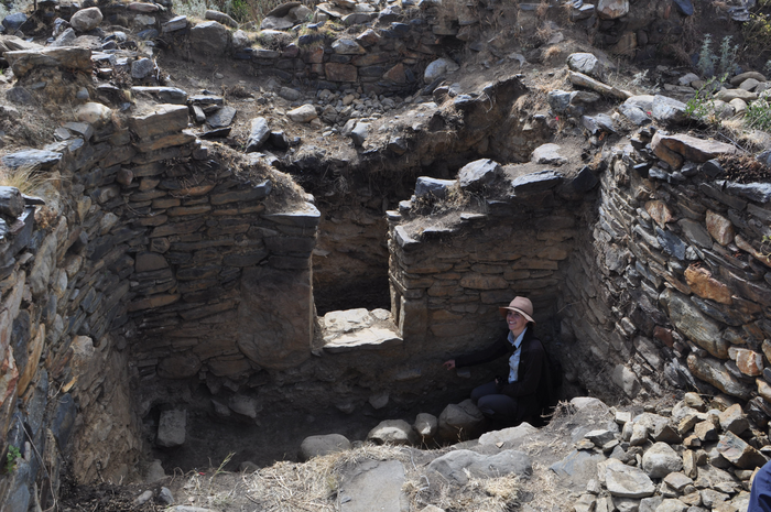 IMAGE: GRÁVALOS INSIDE AN ANCIENT RECUAY HOUSEHOLD AT THE ARCHAEOLOGICAL SITE OF JECOSH IN ANCASH, PERU. RECUAY WAS ONE OF THE LOCAL CULTURES WITH WHOM WARI INTERACTED DURING THEIR IMPERIAL EXPANSION. view more