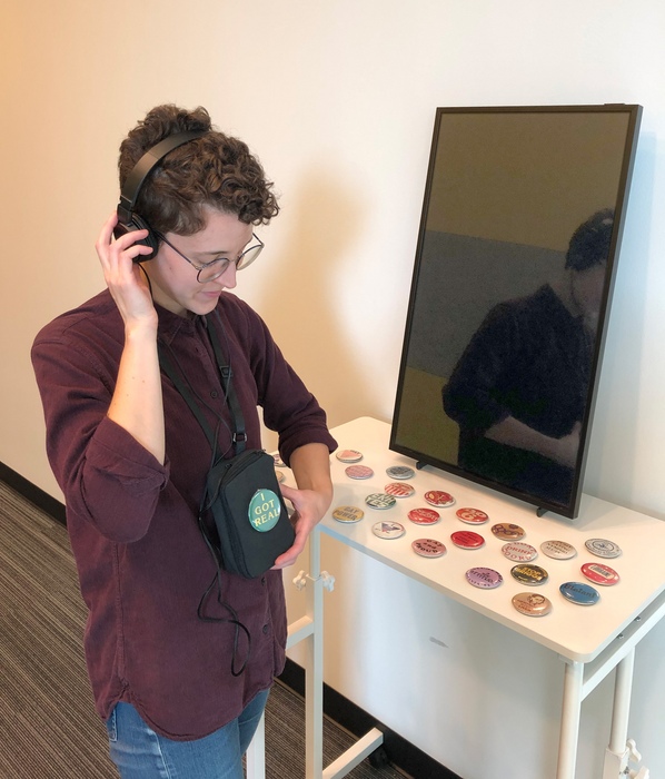 The buttons are from the personal collections of two local queer activists, Lorraine Fontana and Maria Helena Dolan. The researchers created replicas of the historic buttons and paired them with oral history recordings of Fontana and Dolan also in the archive. Participants of the study were encouraged to interact with the buttons through a wearable audio player — touching them, putting them on, and hearing these histories in the activists’ own words. The experience created a tangible connection to queer history and invited the participant into the narrative.