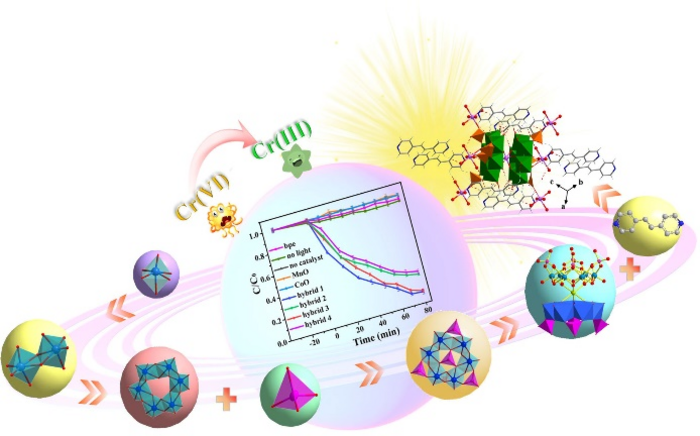 “This green approach for the removal of heavy metal ions uses sustainable light energy via hourglass-type phosphomolybdate-based crystalline photocatalysts and develops a strategy for the regulation of photocatalytic performance by adjusting the central metal ions in hourglass-type phosphomolybdate clusters,” said Ma. Researchers chose this particular type of photocatalyst because of its molecular properties and well-defined hourglass-type structure, which give it a wide light absorption ability and the band structure necessary to reduce the levels of hexavalent chromium.