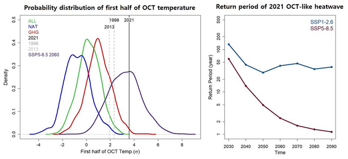A research team at POSTECH led by Professor Seung-Ki Min and Research Professor Yeon-Hee Kim (Division of Environmental Science and Engineering) confirmed the record-high temperature recorded in October 2021 would have been highly improbable without the influence of global warming. This study was conducted in collaboration with the Ulsan National Institute of Science and Technology, the National Institute of Meteorological Sciences, and the U.K. Met Office. The research findings were featured in a special issue of Bulletin of the American Meteorological Society.