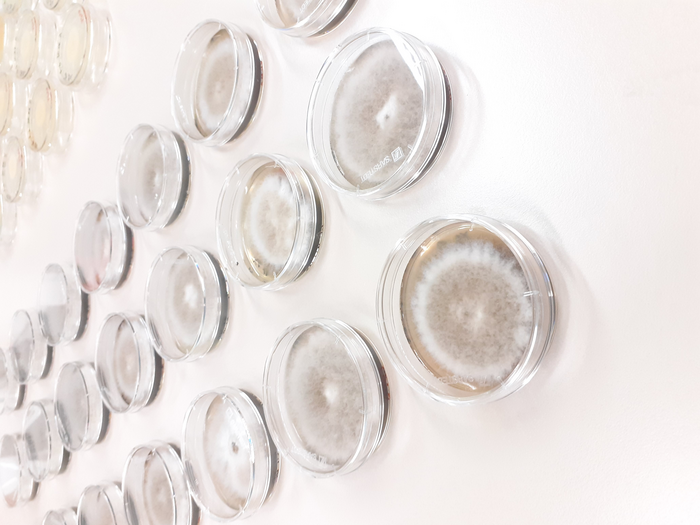 Cultures of the food fungus Ambrosiella grosmanniae of the black stem borer in the laboratory of the University of Freiburg