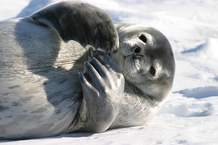 IMAGE: A WEDDELL SEAL IN ANTARTICA view more