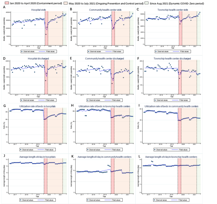 “The greatest impact of the COVID-19 pandemic on healthcare services utilization was observed during the containment period; there was a 32% reduction in hospital visits, 27% decrease for community health centers and 22% decline for township centers,” explained Liu. “Over time, this effect on healthcare facility visits and discharged patients began to subside and eventually disappeared. Yet even two years later, there remained a negative impact on utilization rates of beds, length of stay, inpatient costs as well as average outpatient costs across different facilities.”