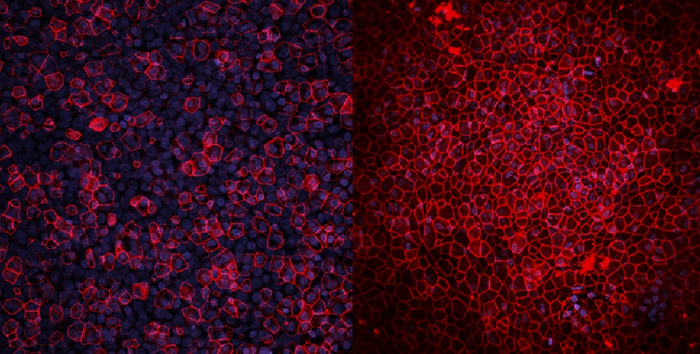 Diseased (left) and healthy (right) membrane slivers from a lung organoid