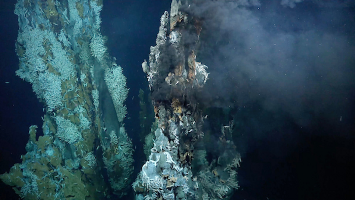 This high-temperature hydrothermal vent field was discovered during the expedition in the Mid-Atlantic Ridge. Within hydrothermal vents, seawater chemically altered through water-rock interactions at high temperatures is expelled through geological formations called chimneys.