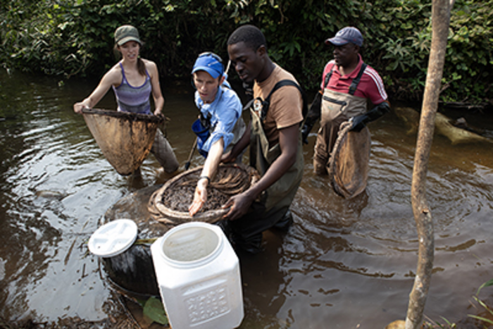 Michigan State University's Jason Gallant and his team surveying a stream for electric fishes in Gabon.