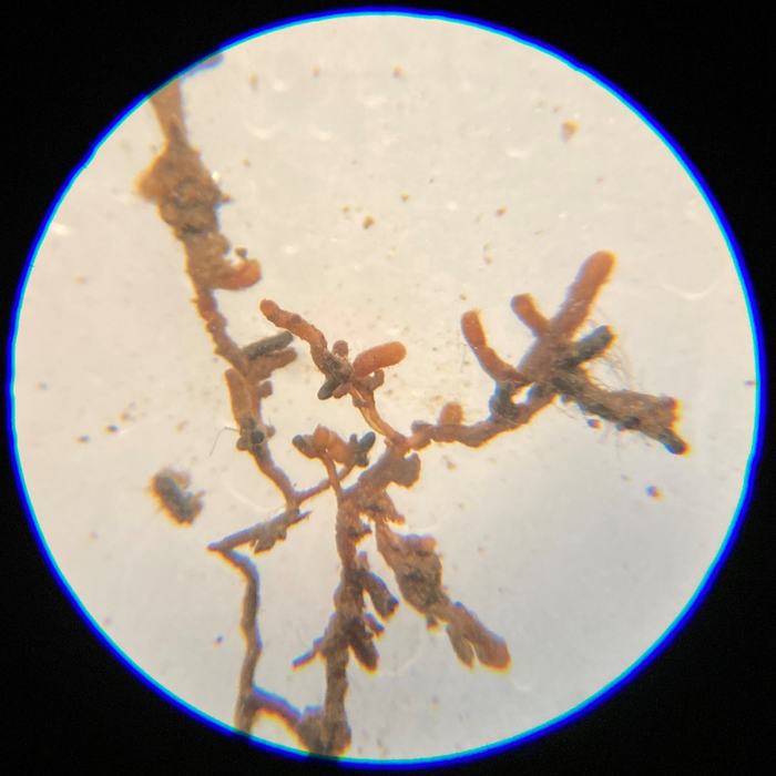Peer-Reviewed PublicationIMAGE: UNDER THE MICROSCOPE, THESE BEECH TREE ROOTS (FAGUS GRANDIFOLIA) ARE FULL OF ROOT TIPS COLONIZED BY A COUPLE DIFFERENT TYPES OF MYCORRHIZAL FUNGI. RESEARCHERS AT THE HOLDEN ARBORETUM COLLECTED SAMPLES LIKE THIS ONE AND COUNTED OVER 70,000 ROOT TIPS TO QUANTIFY THE EFFECTS OF BEECH LEAF DISEASE ON THIS IMPORTANT MUTUALISM BETWEEN TREE AND FUNGI. view more