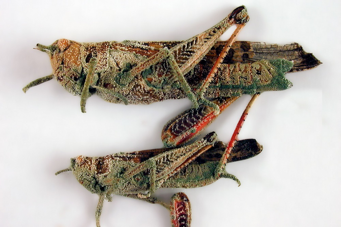 IMAGE: LOCUSTS ATTACKED BY THE FUNGUS METARHIZIUM SP. view more