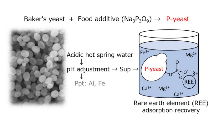 Peer-Reviewed PublicationIMAGE: RESEARCHERS HAVE SUCCEEDED IN SELECTIVELY RECOVERING TRACE RARE EARTH ELEMENTS IN SYNTHETIC SEAWATER AND ENVIRONMENTAL WATER, SUCH AS HOT SPRING WATER, USING BAKER’S YEAST WITH A PHOSPHATE GROUP ADDED. view more